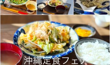 沖縄定食フェア明日、17日(土)から25日(日)まで!ゴーヤーちゃんぷるー定食(ライス・じーまーみ・スープ・漬物)麩ちゃんぷるー定食(ライス・じーまーみ・スープ・漬物)タコライスセット(じーまーみ・もずく酢・スープ)もずく天ぷら…