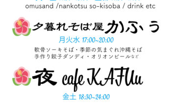 果報 第一通り店では3つの時間帯&曜日で営業しております!画像をご確認の上、是非いらしてくださいね♪⭐︎OMUSAND KAFUu火〜金曜日 11時半〜15時土・日曜日 11時半〜17時⭐︎夕暮れそば屋 …